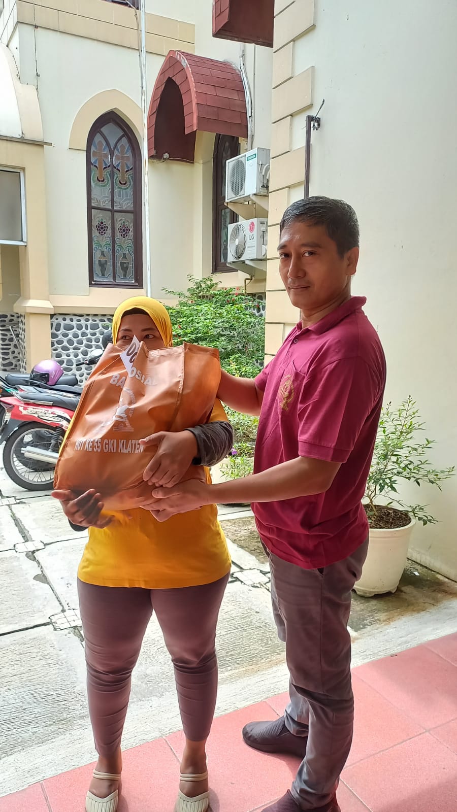 Sedikitnya 132 paket sembako di bagikan GKI Klaten kepada anggota jemaat dan warga sekitar Gereja yang membutuhkan.