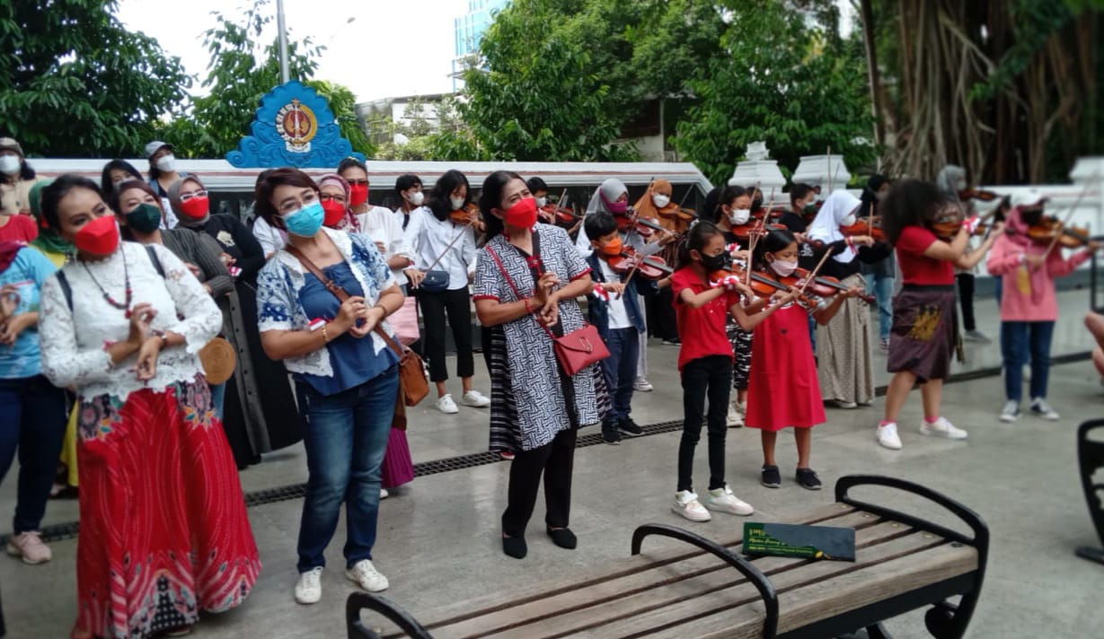 YOGYAKARTA, INAMEDIA.id – Belasan anak anak memainkan biola melantunkan lagu Tanah Airku di selasar Malioboro tepatnya di depan gedung DPRD DIY Jln Malioboro (Sabtu/9-4-2022).