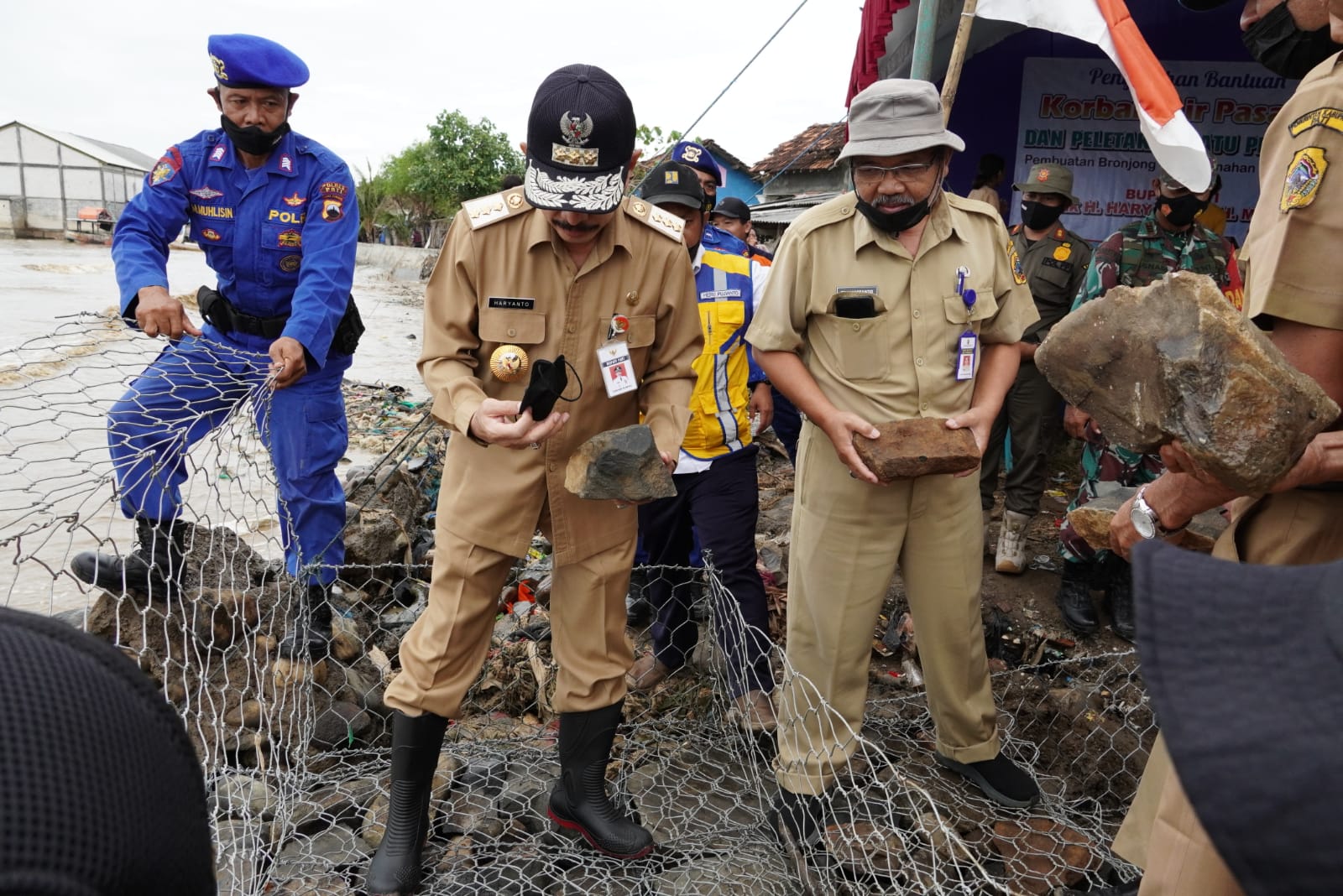 Untuk mengantisipasi adanya gelombang air laut pasang susulan, Bupati Haryanto segera merespon untuk melakukan pembuatan talud darurat berupa kawat bronjong dan juga menyerahkan bantuan sosial dari Korpri dan Baznas Kabupaten Pati.