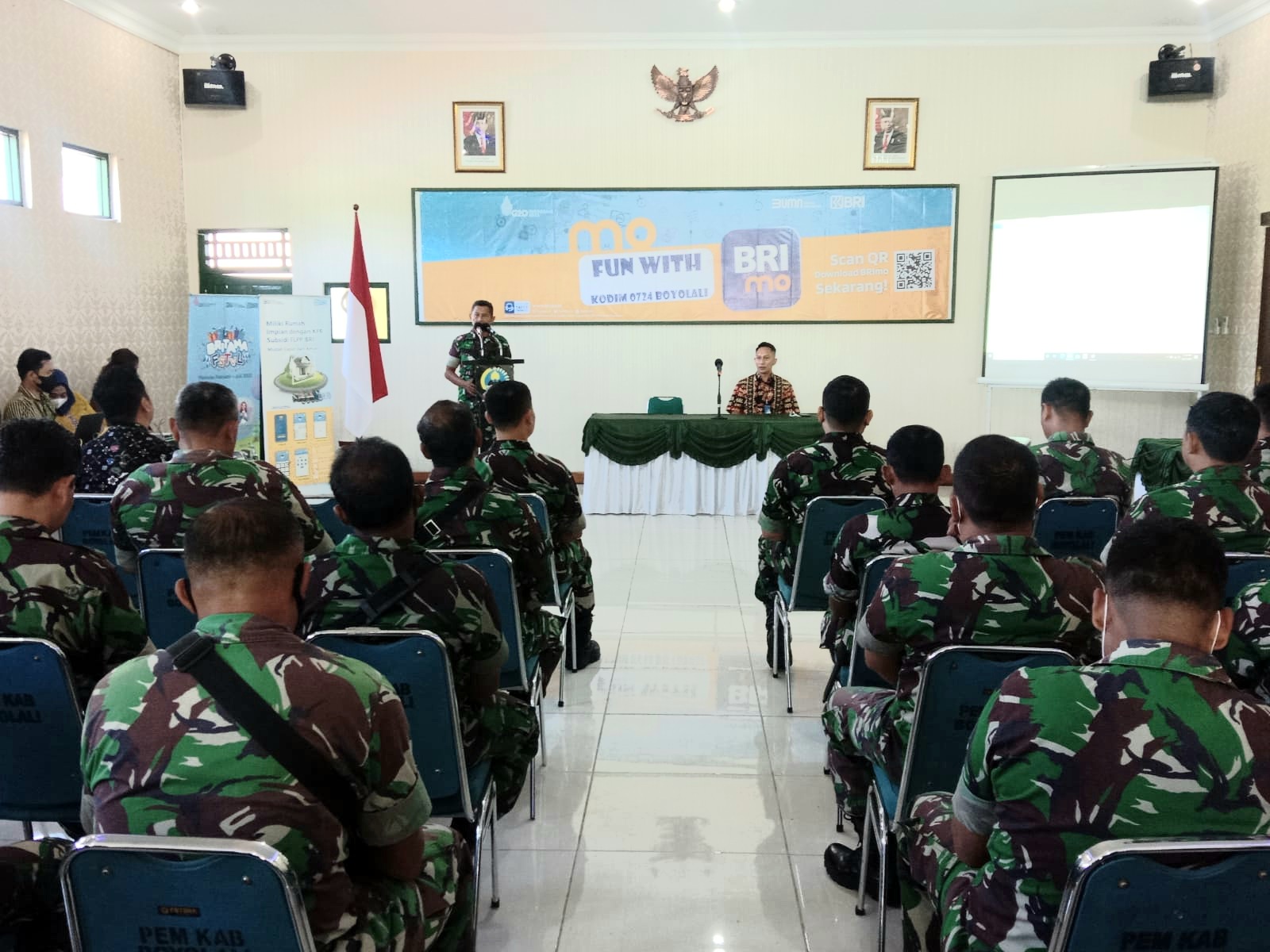 BOYOLALI, INAMEDIA.id – Bank Rakyat Indonesia (BRI) cabang Boyolali melaksanakan sosialisasi aplikasi BRImo kepada anggota Kodim 0724/Boyolali sebagai nasabah terbesarnya, bertempat di Aula Kodim Boyolali Jln. Padanaran, Desa Tegalmulyo, Kecamatan Mojosongo, Kabupaten Boyolali, Rabu ( 29/06/2022)