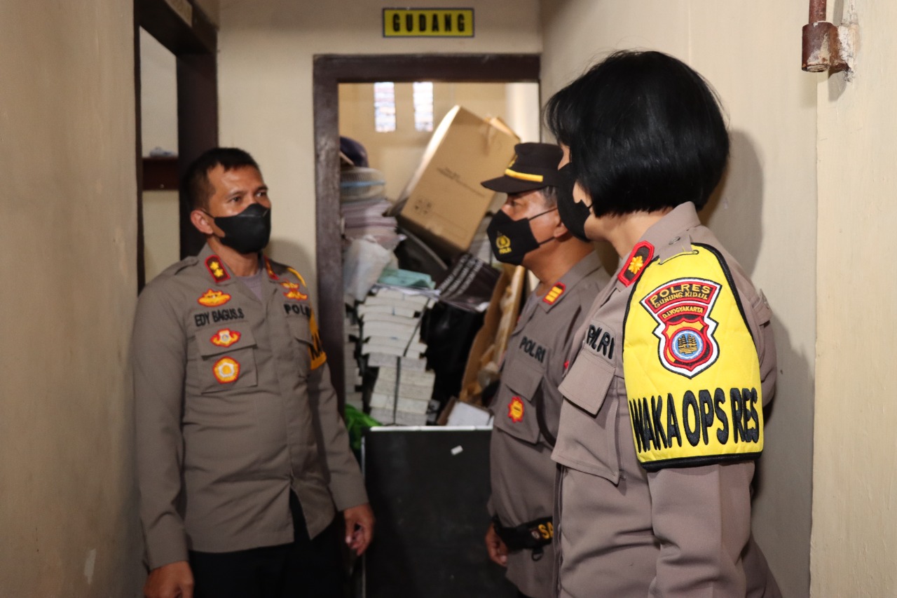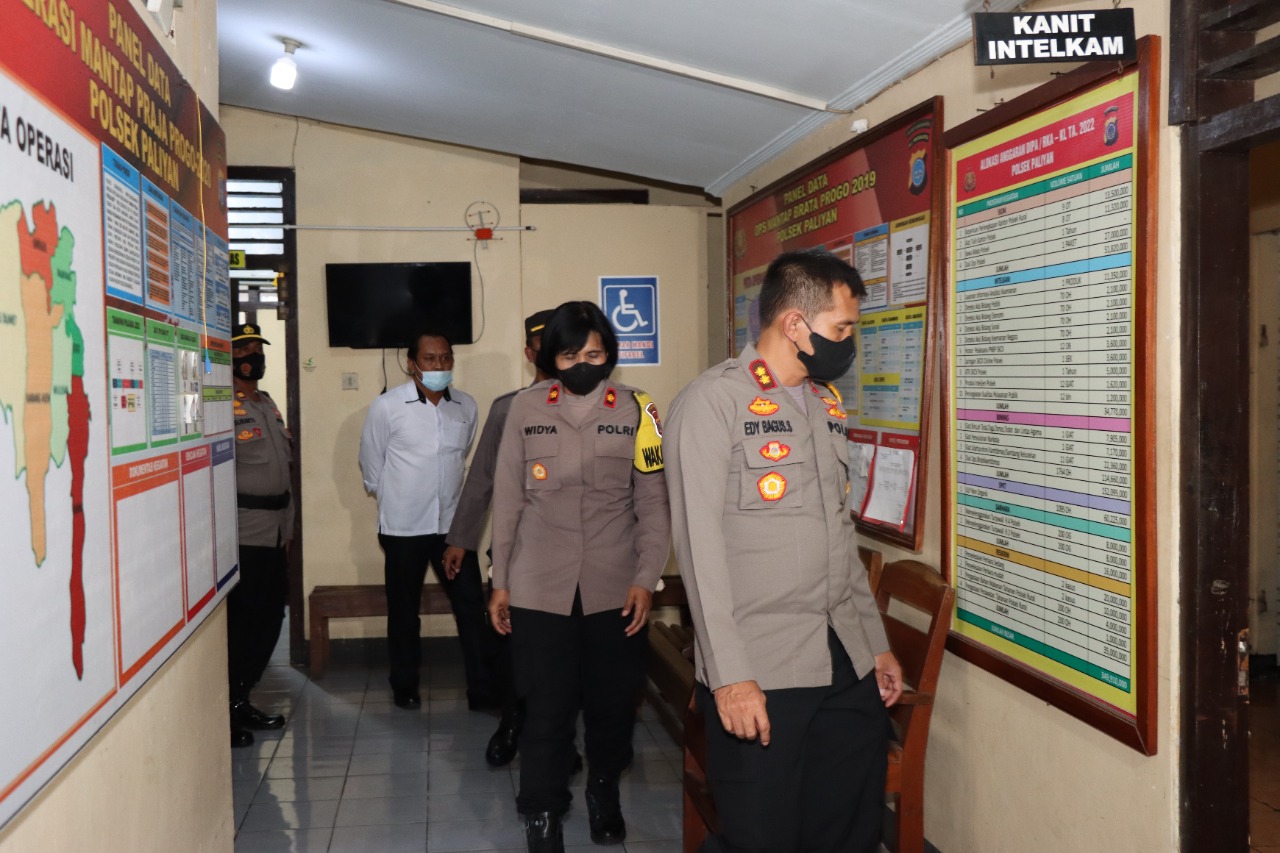 Kapolres Gunungkidul, AKBP Edy Bagus Sumantri, S.I.K., melaksanakan pengecekan yaitu pengecekan ruang pelayanan/Yanmas SPKT Polsek Paliyan, ruangan kerja, ruang tahanan dan halaman Mako Polsek Paliyan.