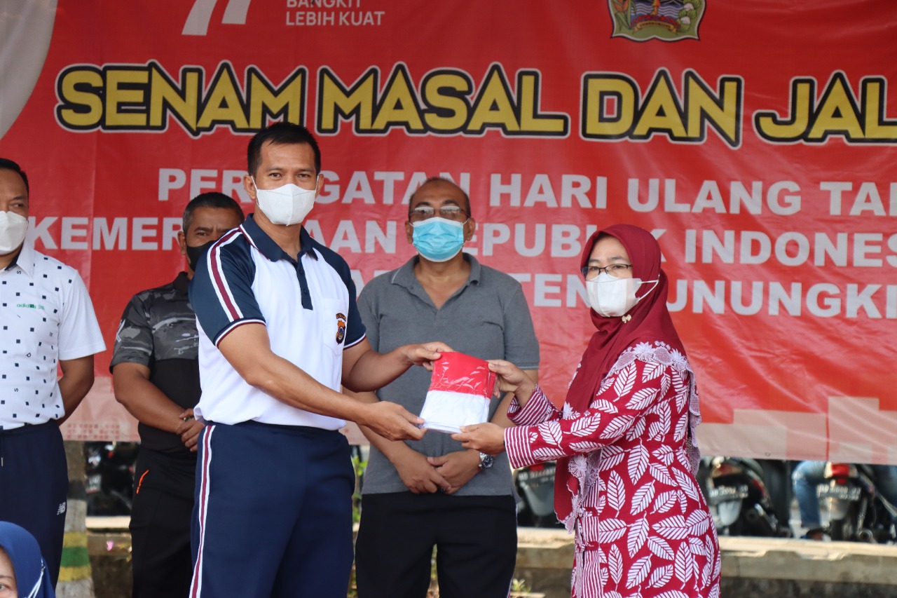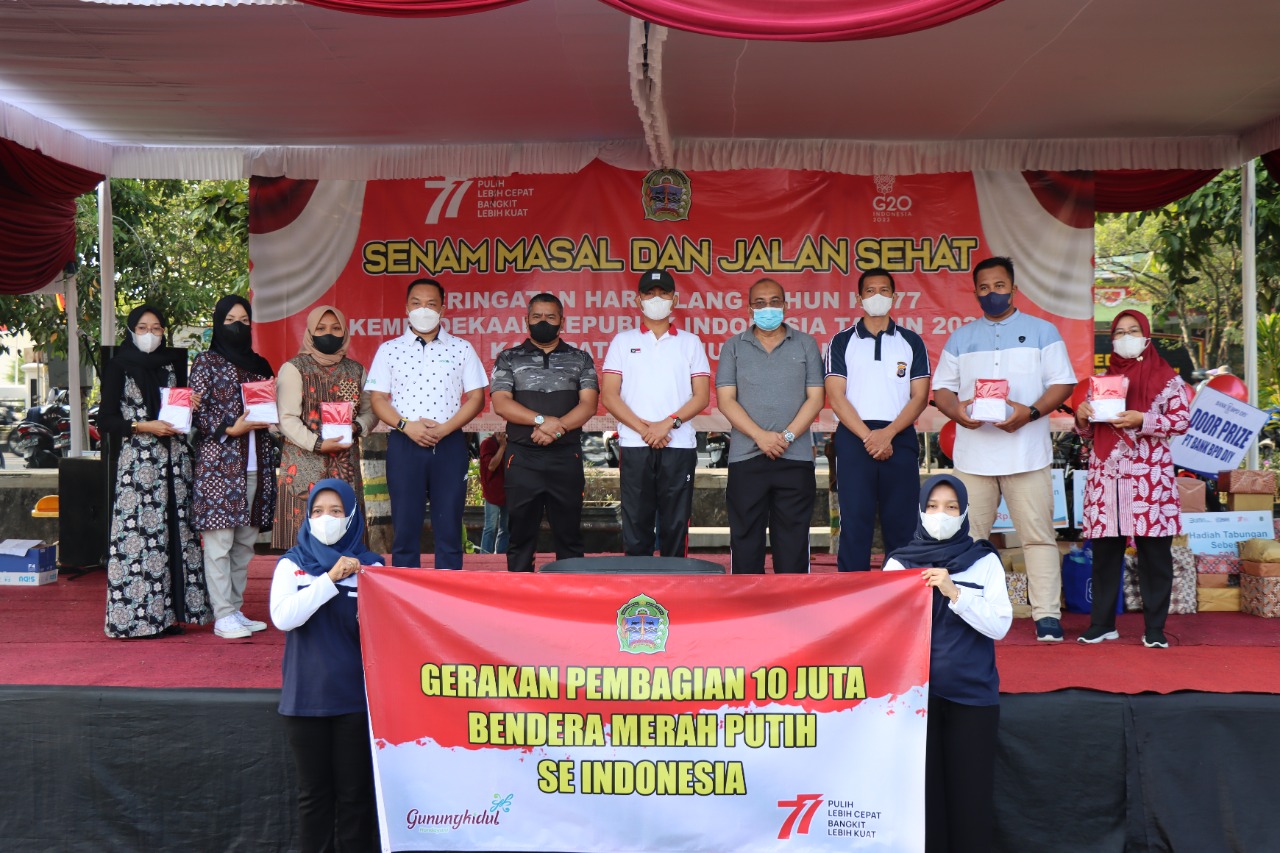 Kegiatan ini juga di suguhkan dengan penyerahan sepuluh juta bendera merah putih yang diserahkan secara simbolis oleh Bupati, Dandim, Kapolres, Kajari, serta kepala PN kepada perwakilan pemuda Gunungkidul.
