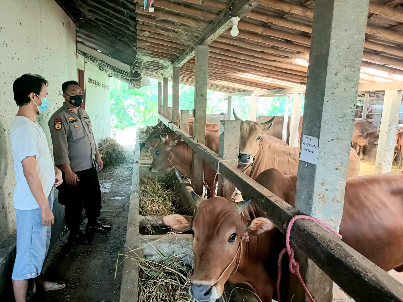 Menurut Kapolres, sesuai dengan rekomendasi dokter hewan, bahwa langkah penanganan hewan yang terkena PMK harus diberi vitamin, obat dan makanan bergizi serta kandang dibersihkan dengan cairan disinfektan.