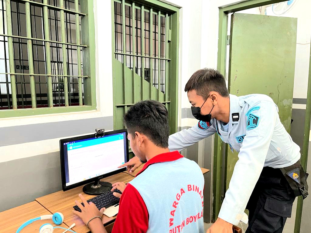 Boyolali, INAMEDIA.id – Rutan Kelas IIB Boyolali selalu bertekad mewujudkan pelayanan prima bagi warga binaan dan masyarakat, salah satu diantaranya yaitu layanan kunjungan online video call. Mulanya layanan ini diberlakukan sejak adanya pandemi covid yang melanda, namun layanan tersebut masih diberlakukan hingga sekarang, Senin (19/09/2022).
