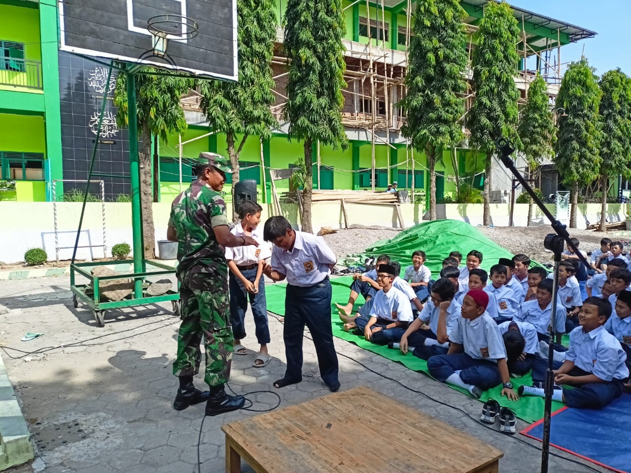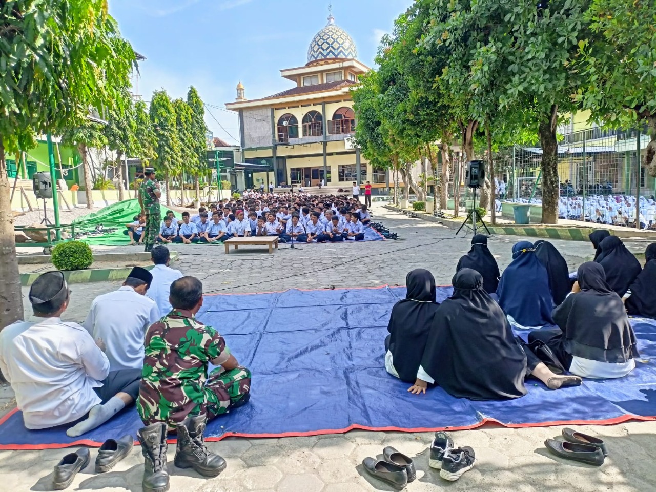 Sukoharjo, INAMEDIA.id – Bertempat di halaman Pondok pesantren Imam Syuhodo Jl. KH. Ahmad Dahlan No 151 Dk. Blimbing RT4 RW5 Ds. Wonorejo Kec. Polokarto Kabupaten Sukoharjo, Kapten Arh Bahrun, S.T (Danramil 11/ Polokarto) didampingi Sertu Eddy Nurseno (Babinsa Desa Wonorejo) memberikan materi Wawasan Kebangsaan kepada Siswa siswi MTs Muhammadiyah Blimbing dalam rangka masa jeda Mid semester ganjil.