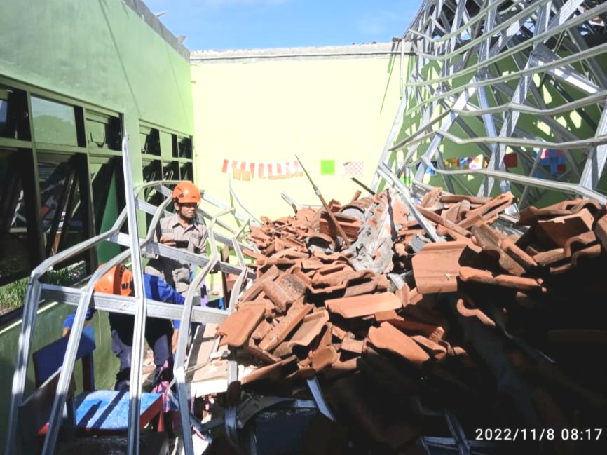 Menurut informasi yang berhasil dihimpun, atap roboh tersebut merupakan gedung moralitas lantai dua. Total bangunan yang atapnya roboh ada sebanyak 3 kelas.