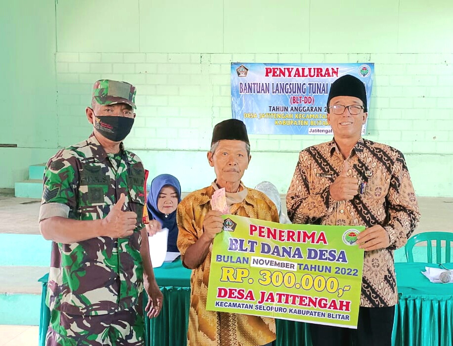Untuk kegiatan penyaluran BLT DD saat ini dilaksanakan di Kantor Desa Jatitengah Kecamatan Selopuro, Kabupaten Blitar, Jumat (25/11/2022).