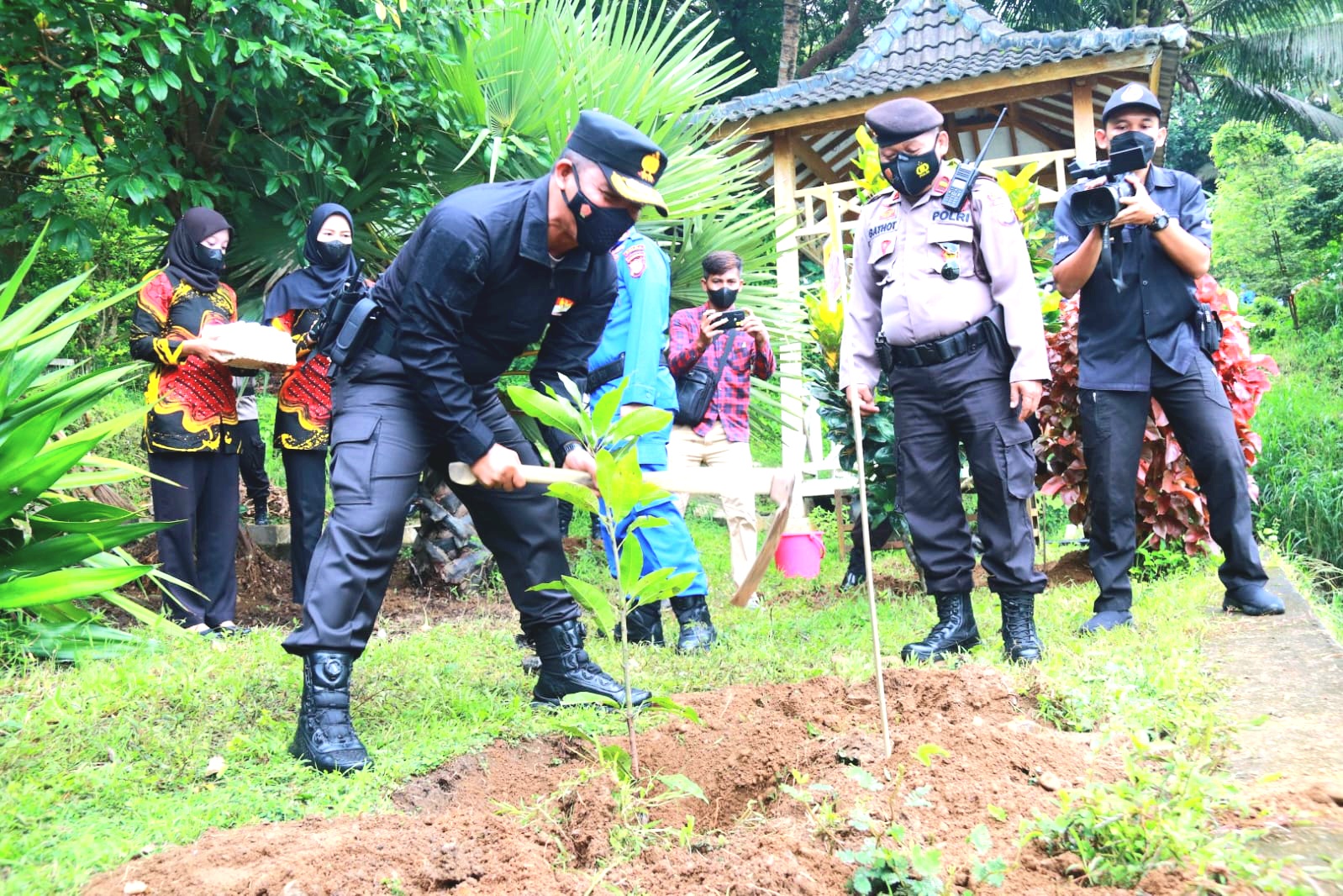Disela meninjau pelatihan penanggulangan bencana bagi personel Polda DIY, Kapolda DIY Irjen Pol Suwondo Nainggolan, S.I.K., M.H., berkesempatan menanam pohon perindang dilokasi Waduk Sermo, Kulonprogo, Sabtu 26 November 2022.