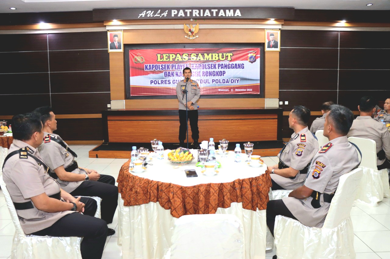 Gunungkidul, INAMEDIA.id – Upacara serah terima jabatan (Sertijab) Kapolsek Playen, Kapolsek Panggang dan Kapolsek Rongkop Polres Gunungkidul berlangsung di Aula Parama Satwika Polres Gunungkidul pada Selasa (06/12/2022).