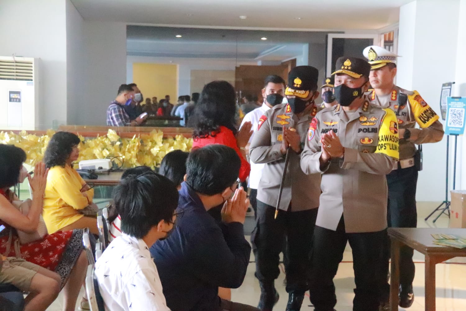 Yogyakarta, INAMEDIA.id – Setelah semalam melakukan pengecekan pengamanan malam Natal, Kapolda DIY Irjen Pol Suwondo Nainggolan, S.I.K., M.H., bersama Wakapolda DIY Brigjen Pol R. Slamet Santoso, S.H., S.I.K., mendampingi Irwasum Polri Komjen Pol Drs. Agung Budi Maryoto, M.Si., CSFA., kembali melakukan pengecekan di sejumlah Gereja dan Pos Pengamanan Nataru di wilayah Yogyakarta.