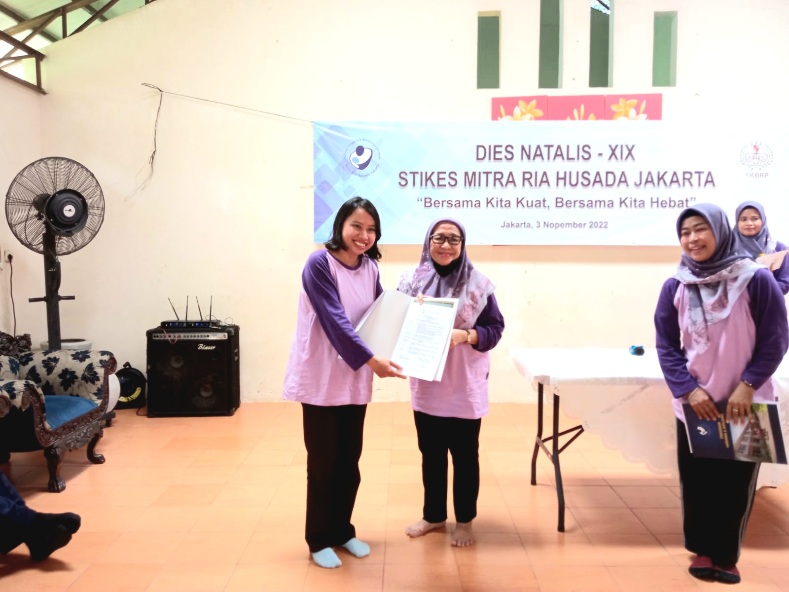 Bersama dengan pemberian penghargaan kepada dosen terbaik 2022, May Sofi tampil maju ke depan untuk menerima penghargaan sebagai karyawan terbaik di STIKes Mitra RIA Husada Jakarta tahun 2022.